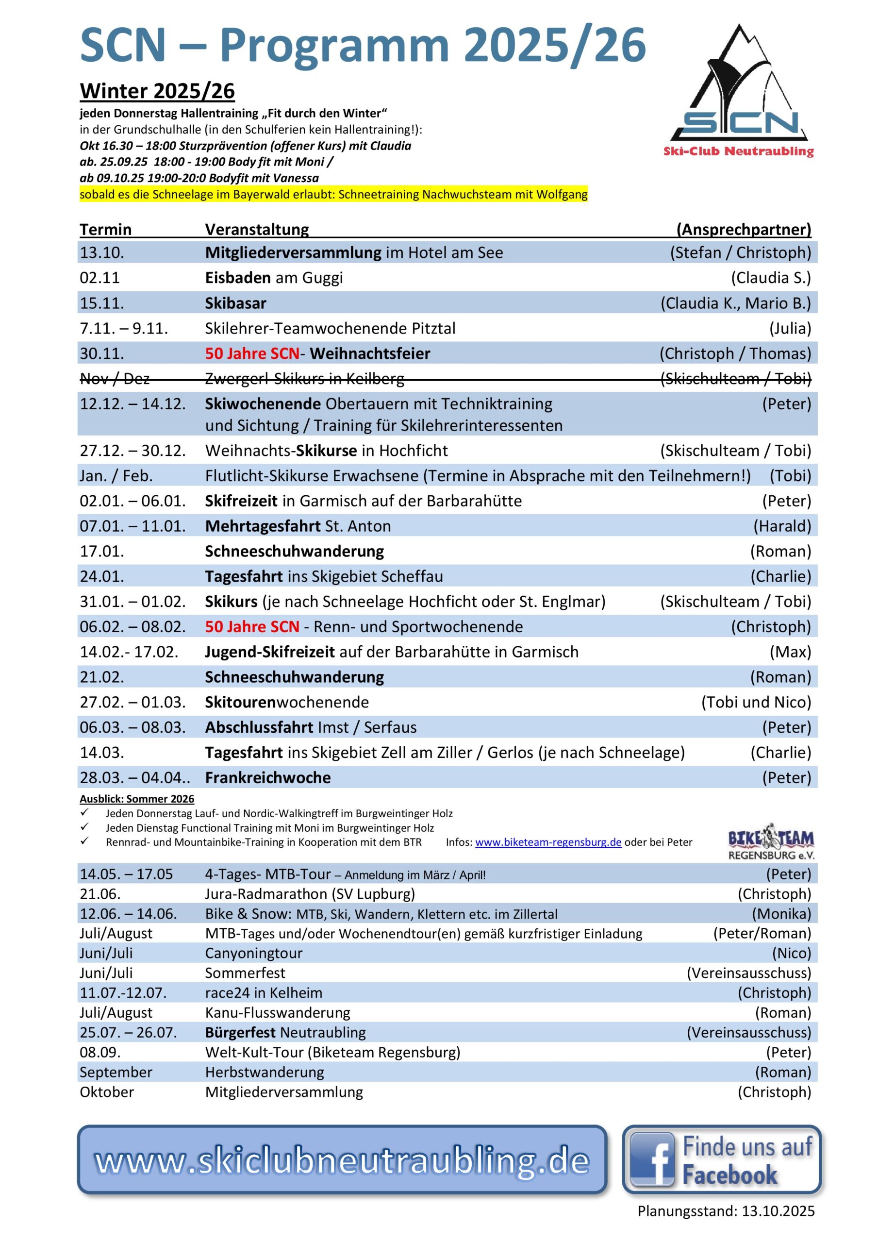 Traditionell hat unsere Jahreshauptversammlung mit starker Beteiligung unserer Mitglieder im Oktober stattgefunden. Es war die 51te Mitgliederversammlung – 50 Jahre Ski-Club Neutraubling e.V.!